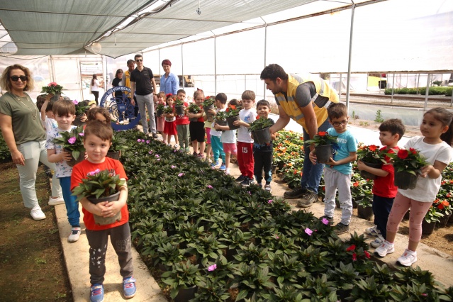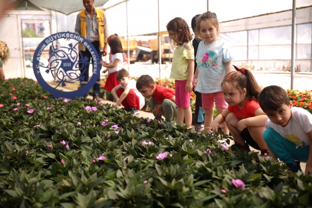 Aydınlı minikler Büyükşehir'in fidanlığında ders işledi