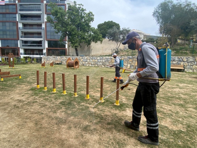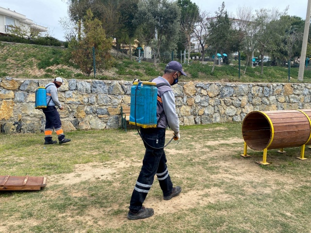 Kuşadası'nda can dostlar için ilaçlama çalışması