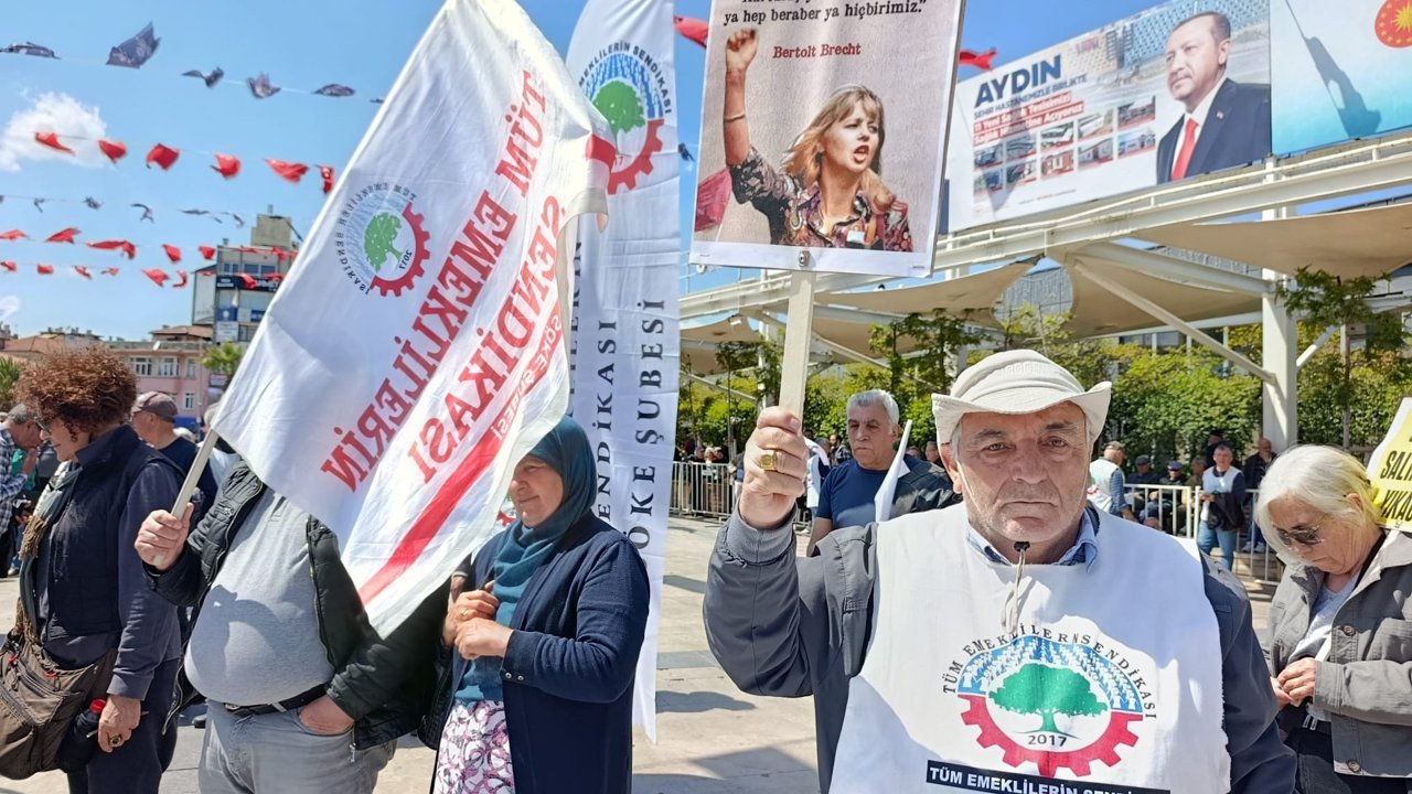 Aydın’da düzenlenen mitingde bir araya gelen emekliler, artan yaşam maliyetleri karşısında maaşlarının yetersiz kaldığını belirterek “insanca yaşam” talebini dile getirdi.